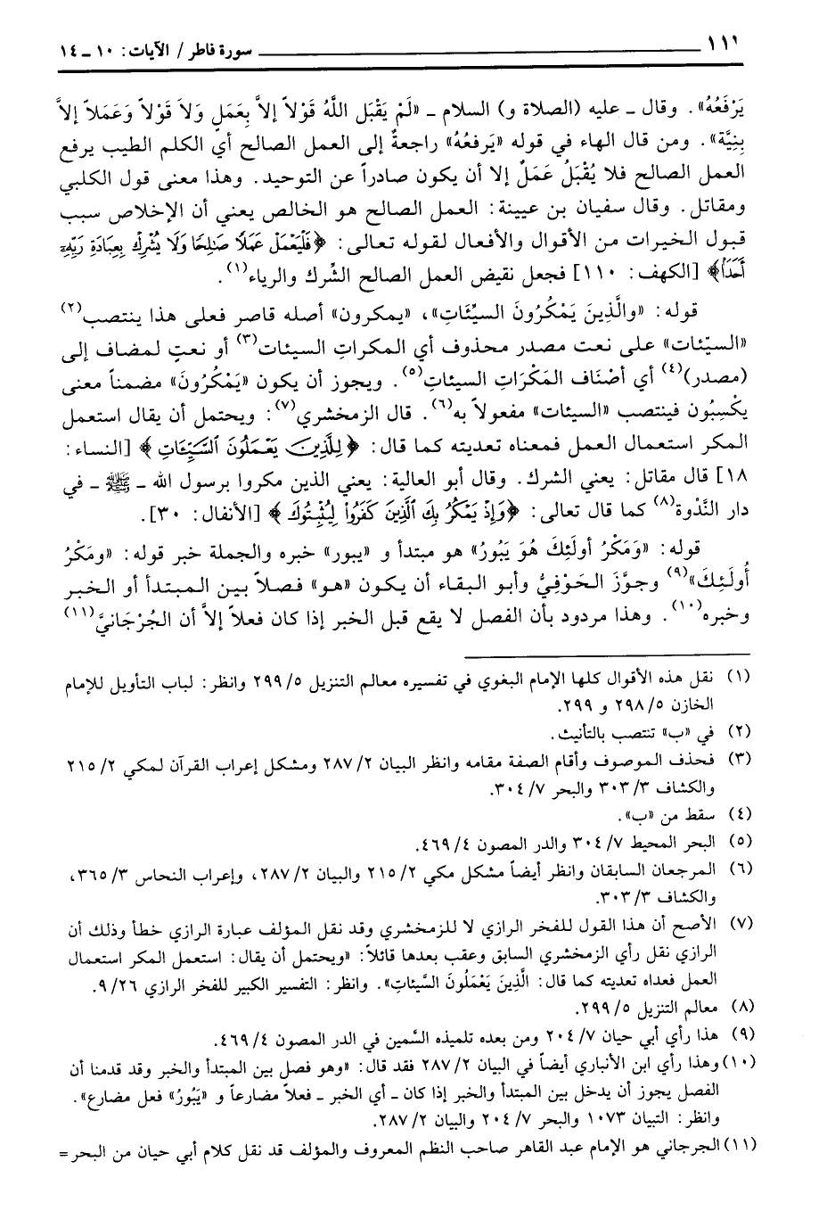 قوله: {وَمَكْرُ أُوْلَئِكَ هُوَ يَبُورُ} هو مبتدأ و «يبور» خبره والجملة خبر قوله: {وَمَكْرُ أُوْلَئِكَ} وجوَّز الحَوْفِيُّ وأبو البقاء أن يكون «هو» فصلاً بين المبتدأ أو الخبر وخبره وهذا مردود بأن الفصل لا يقع قبل الخبر إذا كان فعلاً إلاَّ أن الجُرْجَانيِّ