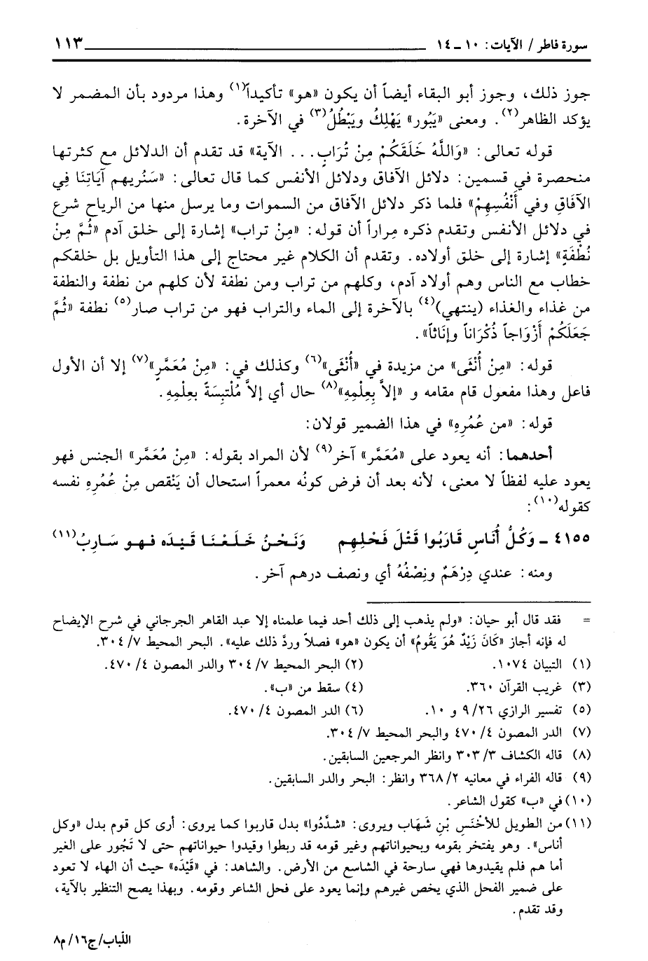 أحدهما: أنه يعود على «مُعَمَّر» آرخ لأن المراد بقوله: «مِنْ مُعَمَّر» الجنس فهو يعود عليه لفظاً لا معنى، لأنه بعد أن فرض كونُه معمراً استحال أن يَنْقص مِنْ عُمُرِهِ نفسه كقوله: