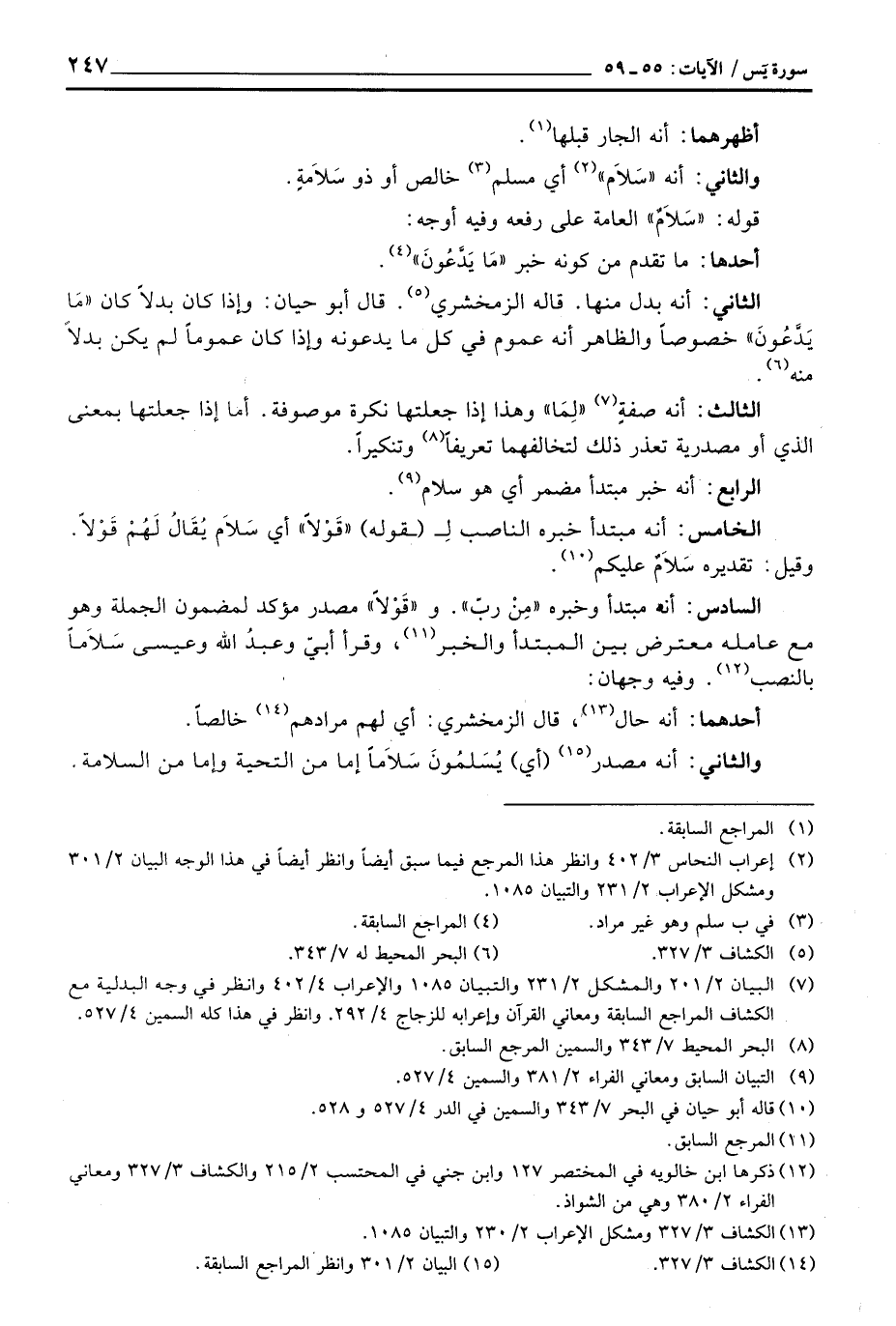 السادس: أنه مبتدأ وخبره «مِنْ ربّ» و «قَوْلاً» مصدر مؤكد لمضمون الجملة وهو مع عامله معترض بين المبتدأ والخبر وقرأ أبيّ وعبدُ الله وعيسى سَلاَماً بالنصب وفيه وجهان: