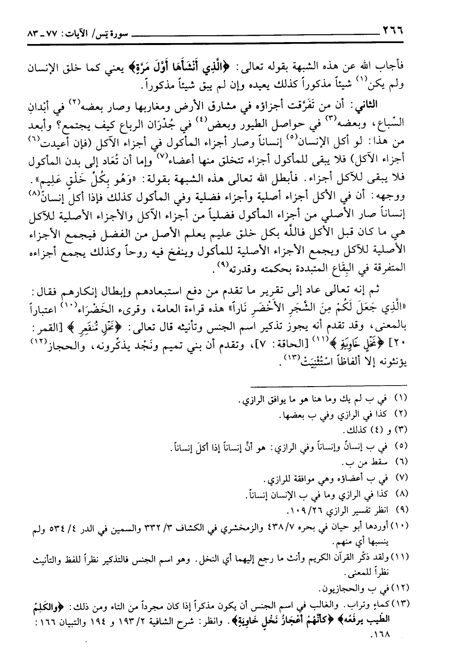 الثاني: أن من تَفَرَّقت أجزاؤه في مشارق الأرض ومغاربها وصار بعضه في أبْدانِ السِّباع، وبعضه في حواصل الطيوب وبعض في جُدْرَان الرباع كيف يجمتع؟ وأبعد من هذا: لو أكل الإنسان إنساناً وصار أجزاء المأكول في أجزاء الآكل (فإن أعيدت أجزاء الآكل) فلا يبقى للمأكول أجزاء تتخلق منها أعضاء وإما أن تُعَاد إلى بدن المأكول فلا يبقى للآكل أجزاء. فأبطل الله تعالى هذه الشبهة بقوله: {وَهُوَ بِكُلِّ خَلْقٍ عَلِيمٌ} ووجهه: أن في الأكل أجزاء أصلية وأجزاء فضلية وفي المأكول كذلك فإذا أكل إنسانً إنساناً صار الأصلي من أجزاء المأكول فضلياً من أجزاء الآكل والأجزاء الأصلية للآكل هي ما كان قبل الأكل فاللَّه بكل خلق عليم يعلم الأصل من الفضل فيجمع الأجزاء الأصلية للآكل ويجمع الأجزاء الأصلية للمأكول وينفخ فيه روحاً وكذلك يجمع أجزاءه المتفرقة في البِقَاع المتبددة بحكمته وقدرته.