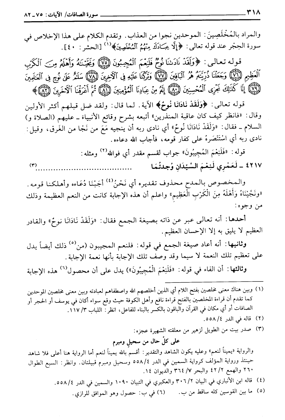 قوله تعالى: {وَلَقَدْ نَادَانَا نُوحٌ} الآية. لما قال: ولقد ضل قبلهم أكثر الأولين وقال: «فانظر كيف كان عاقبة المنذرين» أبتعه بشرح وقائع الأنبياءَ - عليهم (الصلاة و) السلام - فقال: «وَلَقَدْ نَادَانَا نُوحٌ» أي نادى ربه أن ينجيه مَعَ من نَجْا من الغَرق، وقيل: نادى ربه أي اسْتَنْصَرهُ على كفار قومه، فأجاب الله دعاءه.