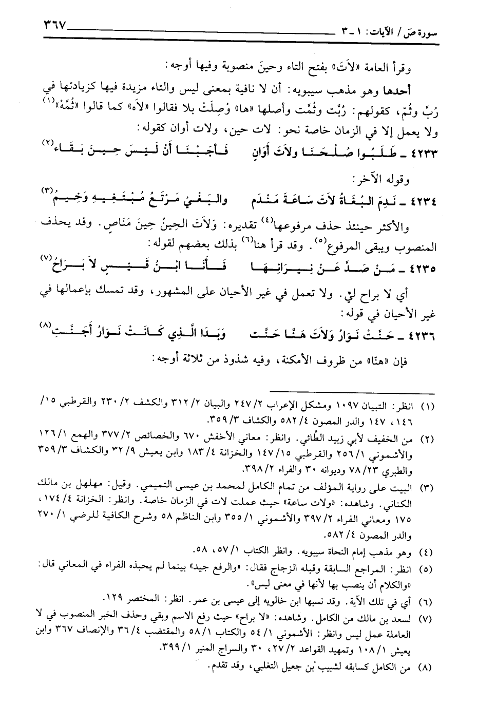 والأكثر حينئذ حذف مرفوعها تقديره: وَلاَتَ الحِينُ حِينَ مَنَاصٍ. وقد يحذف المنصوب ويبقى المرفوع وقد قرأ هنا بذلك بعضهم لقوله: