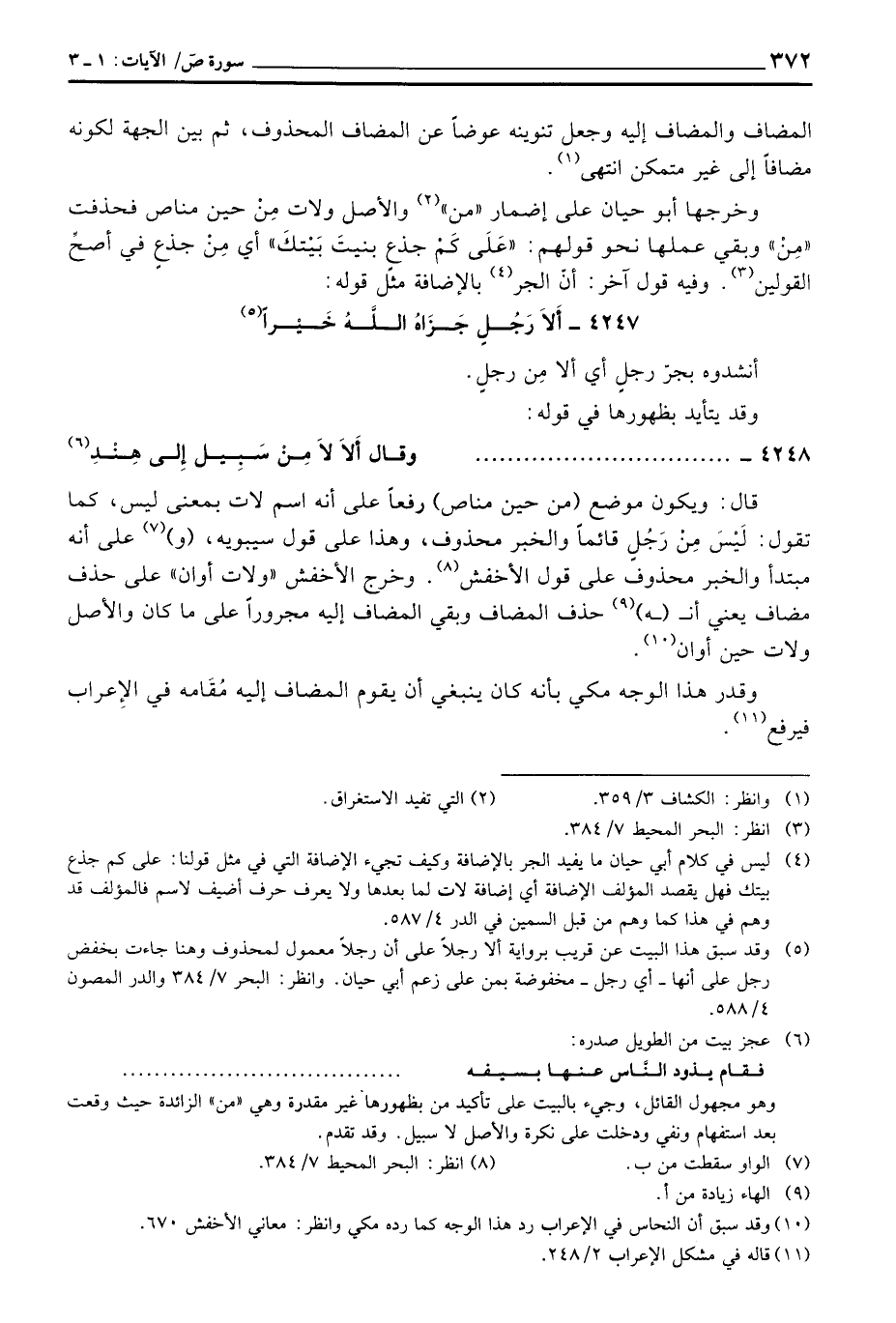 وخرجها أبو حيان على إضمار» من «والأصل ولات مِنْ حين ماص فحذفت» مِنْ «وبقي عملها نحو قولهم:» عَلَى كَمْ جذع بنيتَ بَيْتكَ «أي مِنْ جذعٍ في أصحِّ القولين وفيه قول آخر: بالإضافة مثل قوله: