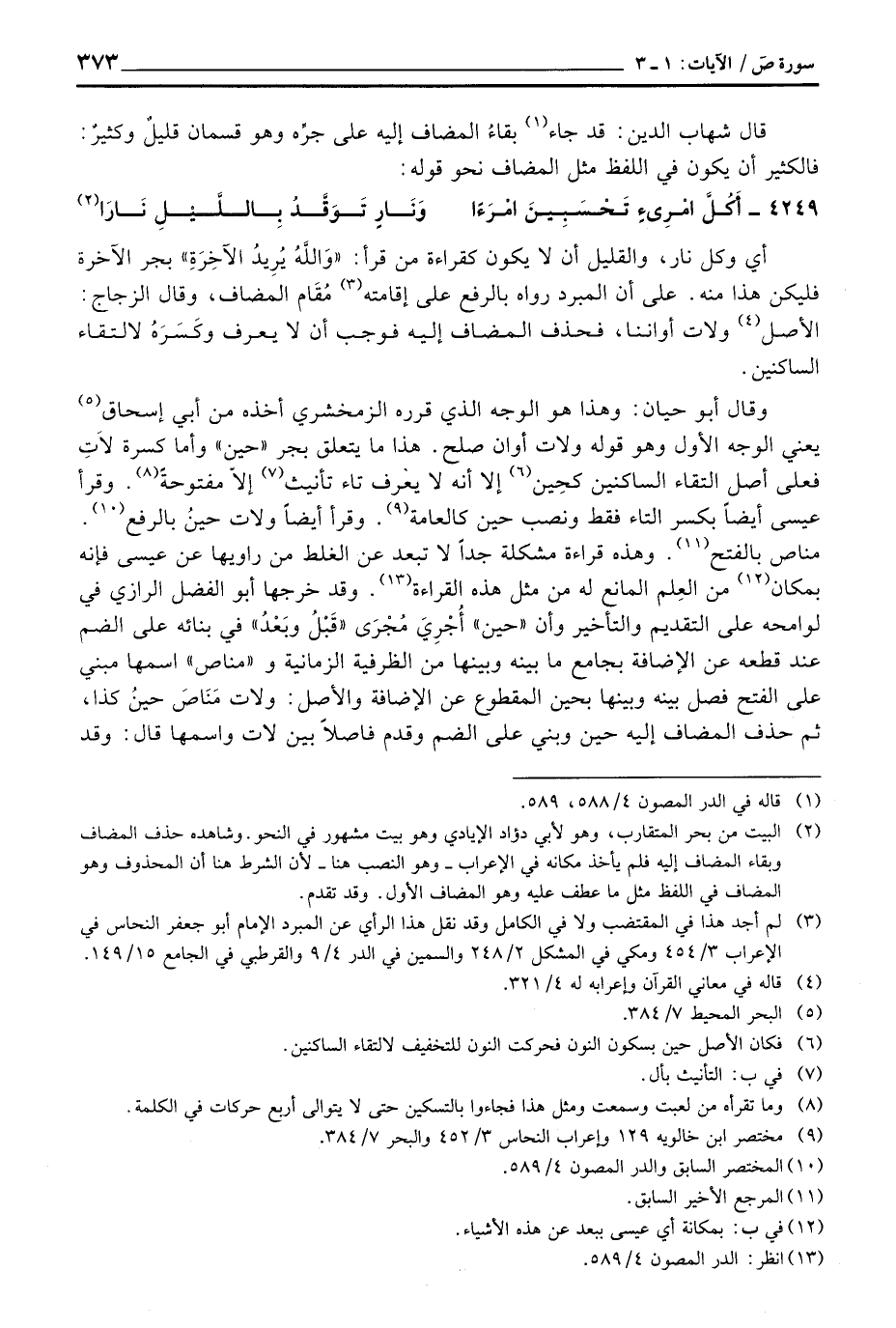 وقال أبو حيان: وهذا هو الوجه الذي قرره الزمخشري أخذه من أبي إسحاق يعني الوجه الأول وهو قوله ولات أوان صلح. هذا ما يتعلق بجر» حين «وأما كسرة لاَتِ فعلى أصل التقاء الساكينن كحِين إلا أنه لا يعرف تاء تأنيث إلاّ مفتوحةً وقرأ عيس أيضاً بكسر التاء فقط ونصب حين كالعامة.