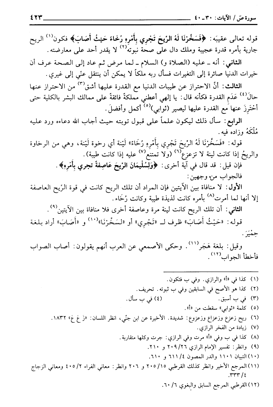 قوله: {حَيْثُ أَصَابَ} ظرف ل «تَجْرِي» أو لسَخَّرْنَا «و» أَصَابَ «أراد بلغة حِمْيَرَ.