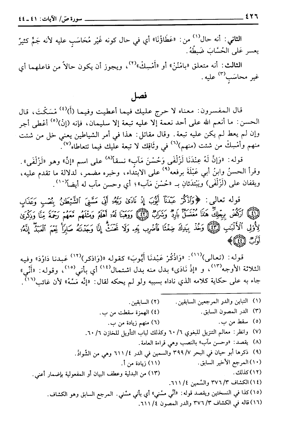 الثاني: أنه حال من «عَطَاؤُنَا» أي في حال كونه غَيْر مُحَاسَبٍ عليه لأن جَمٌّ كثيرٌ يعسر عَلى الحُسَّابَ ضَبطُهُ.