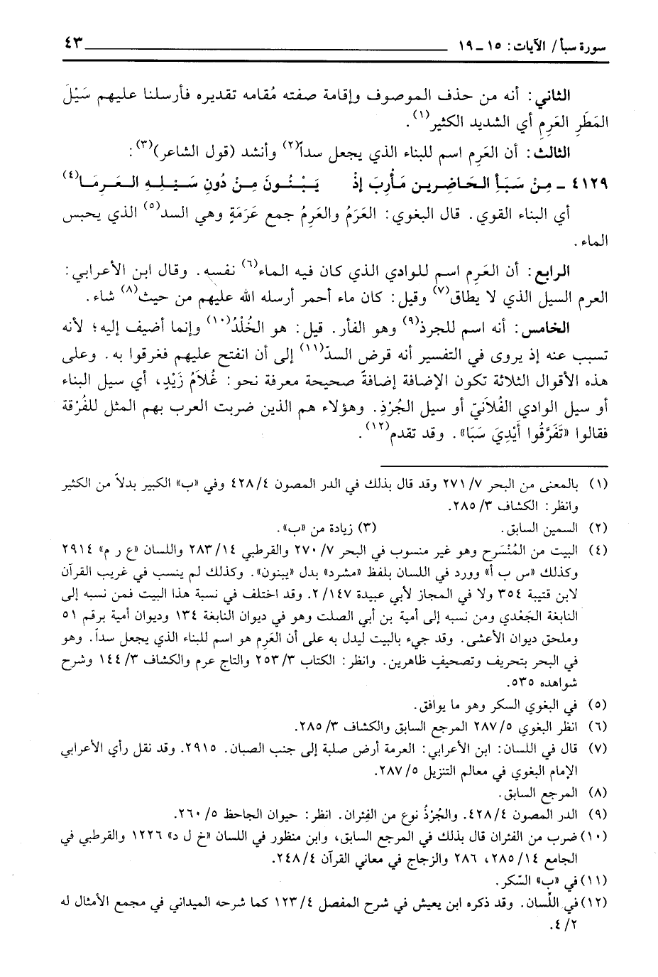 4129 - مِنْ سَبَأِ الحَاضِرين مَأْرِبَ إذْ ... يَبْنُونَ مِنْ سَيْلِهِ العَرِمَا