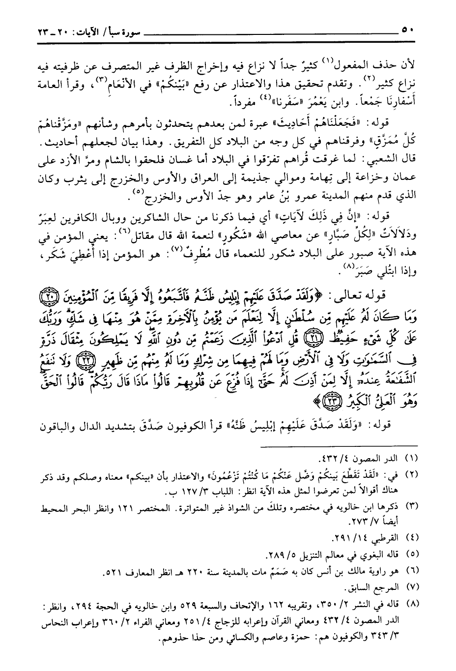 قوله: {وَلَقَدْ صَدَّقَ عَلَيْهِمْ إِبْلِيسُ ظَنَّه} قرأ الكوفيون صَدَّقَ بتشديد الدال والباقون