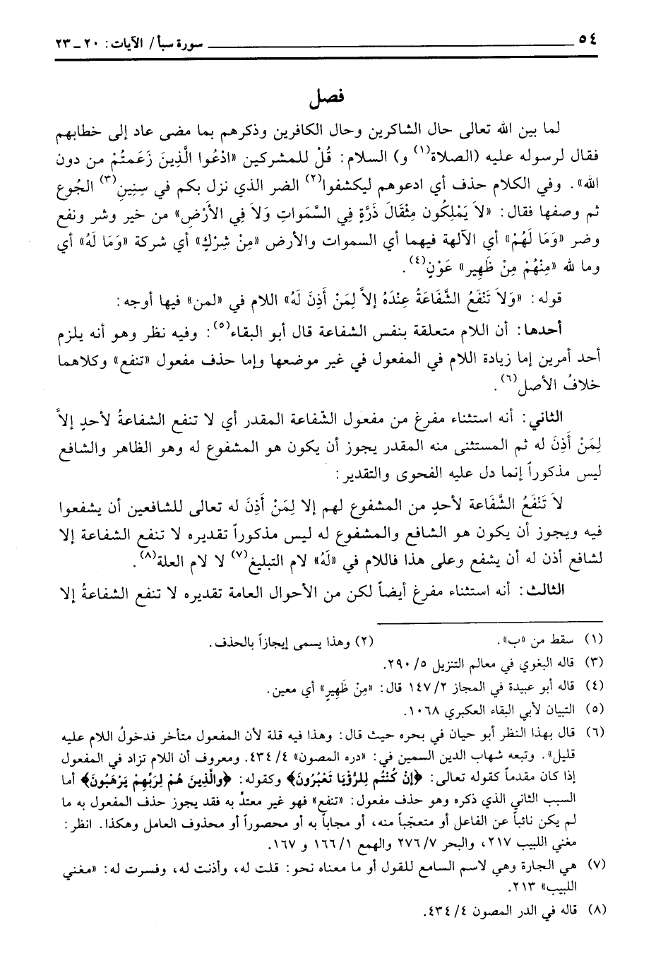 قوله: {وَلاَ تَنفَعُ الشفاعة عِندَهُ إِلاَّ لِمَنْ أَذِنَ لَهُ} اللام في» لمن «فيها أوجه: