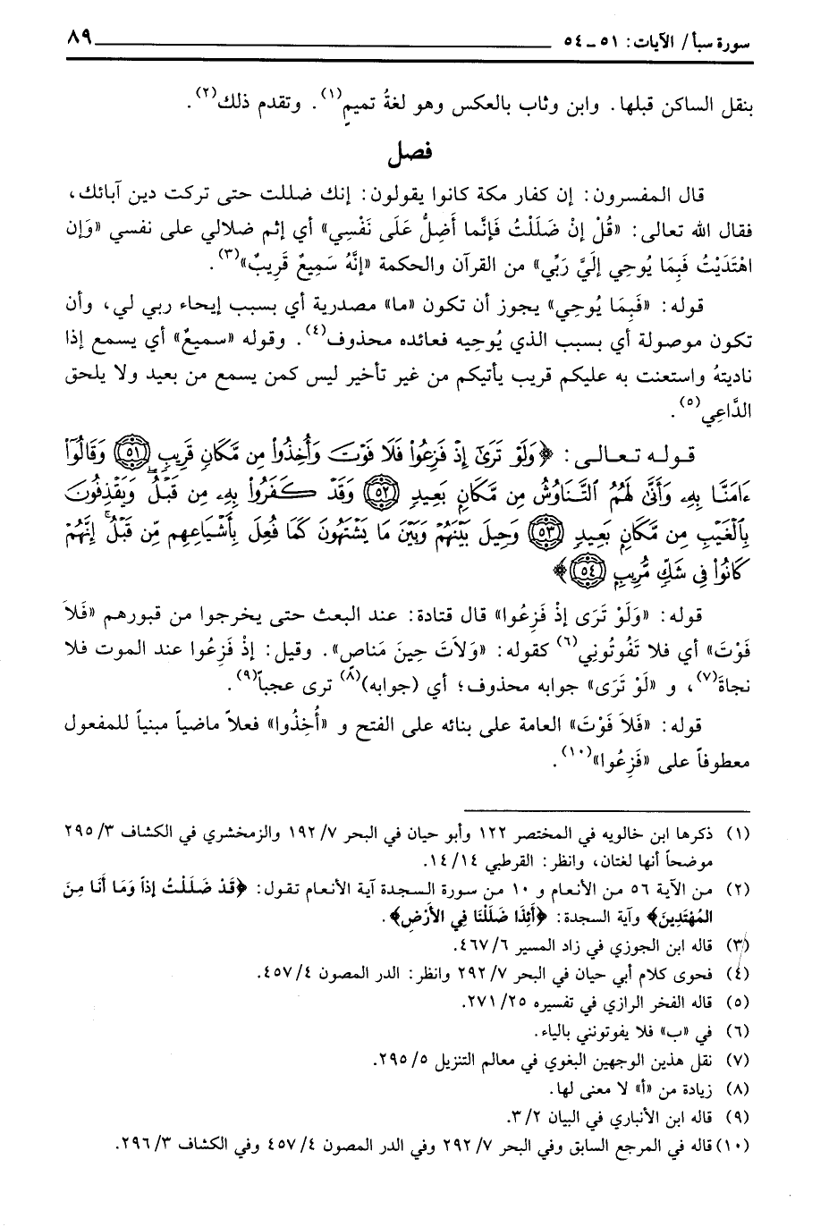 قوله: {وَلَوْ ترى إِذْ فَزِعُواْ} قال قتادة عن البعث حتى يخرجوا من قبورهم «فَلاَ فَوْتَ» أي فلا تَفُوتُونِي كقوله: {وَّلاَتَ حِينَ مَنَاصٍ} [ص: 3] وقيل: إذْ فَرِعُوا عند الموت فلا نجاةَ و «لَوْ تَرَى» جوابه محذوف؛ أي (جوابه) ترى عجباً.