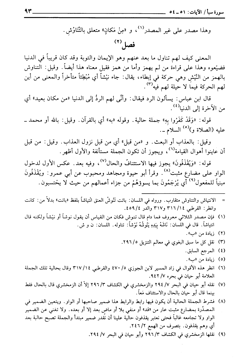 المعنى كيف لهم تناول ما بعد وهم الإيمان والتوبة وقد كان قريباً في الدنيا فضيّعوه وهذا على قراءة من لم يهمز وأما من همز معناه هذا أيضاً. وقيل: التناوش بالهمز من النَّيْشِ وهي حركة في إبطاء، يقال: جاء نيْشاً أي مُبْطِئاً متأخراً والمعنى من أي لهم الحركة فيما لا حيلة لهم فيه.