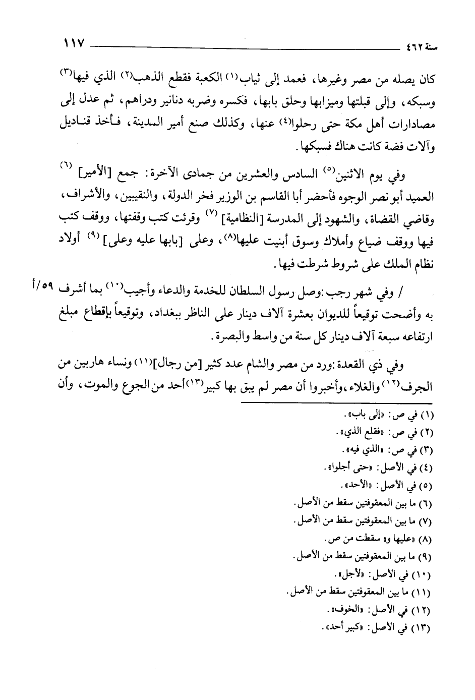 وفي يوم الاثنين [5] السادس والعشرين من جمادى الآخرة: جمع [الأمير] [6] العميد أبو نصر الوجوه فأحضر أبا القاسم بن الوزير فخر الدولة، والنقيبين، والأشراف، وقاضي القضاة، والشهود إلى المدرسة [النظامية] [7] وقرئت كتب وقفتها، ووقف كتب فيها ووقف ضياع وأملاك وسوق أبنيت عليها [8] ، وعلى [بابها عليه وعلى] [9] أولاد نظام الملك على شروط شرطت فيها.