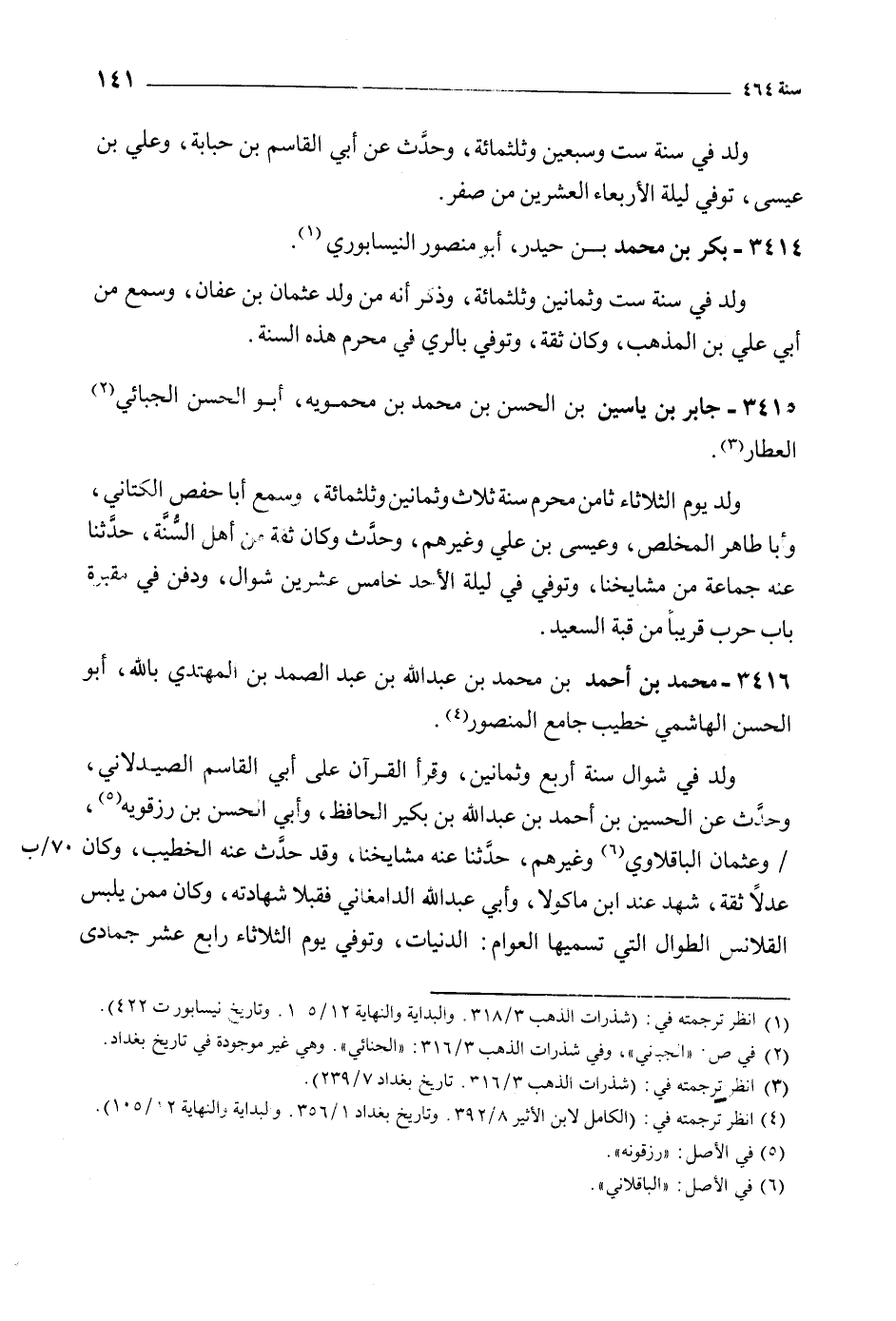 [1] انظر ترجمته في: (شذرات الذهب 3/ 318. والبداية والنهاية 12/ 105. وتاريخ نيسابور ت 422) .