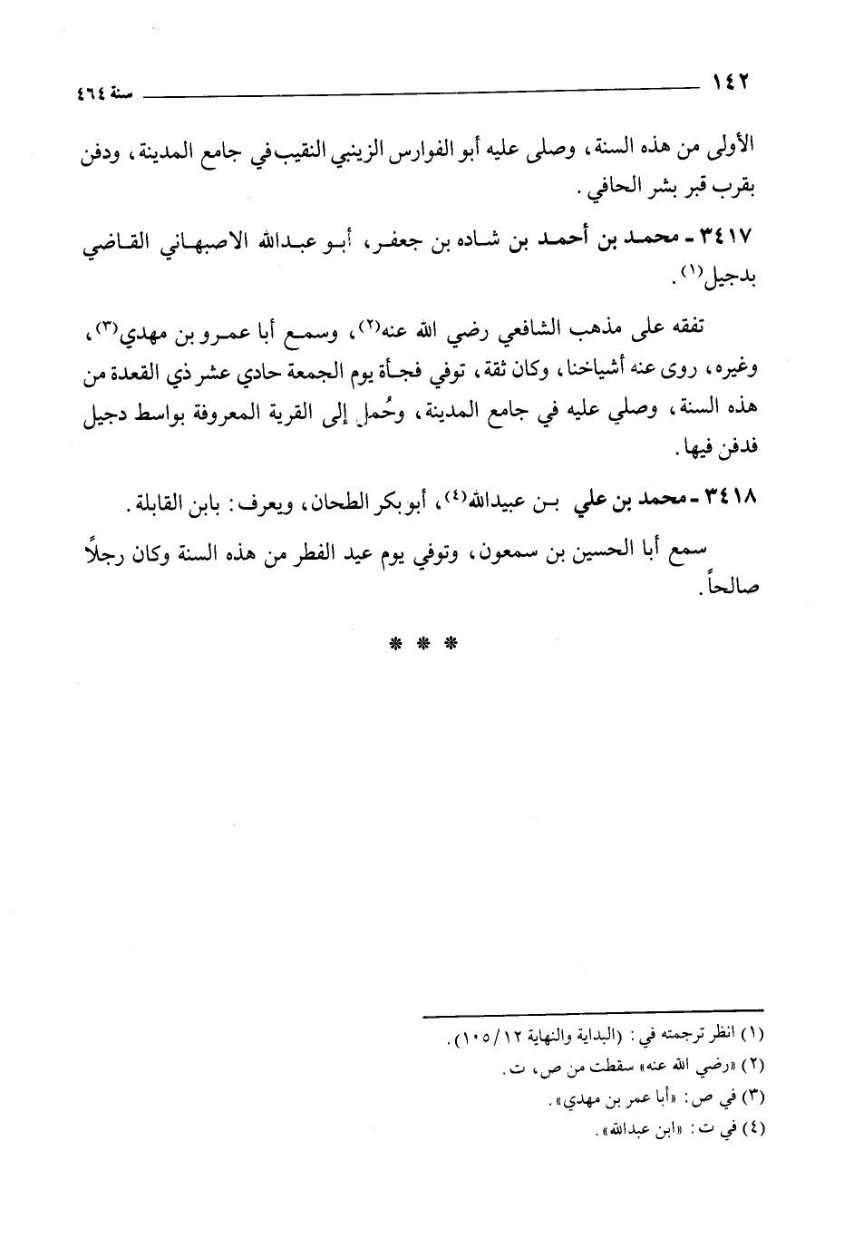 3417- محمد بن أحمد بن شاده بن جعفر، أبو عبد الله الأصبهاني القاضي بدجيل