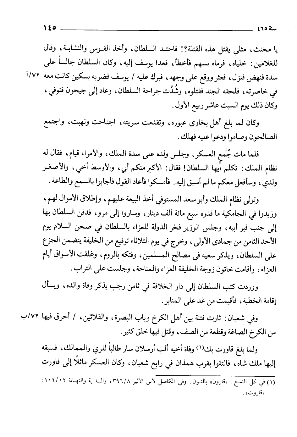 [1] في كل النسخ: «قارون» بالنون. وفي الكامل لابن الأثير 8/ 396، والبداية والنهاية 12/ 106: