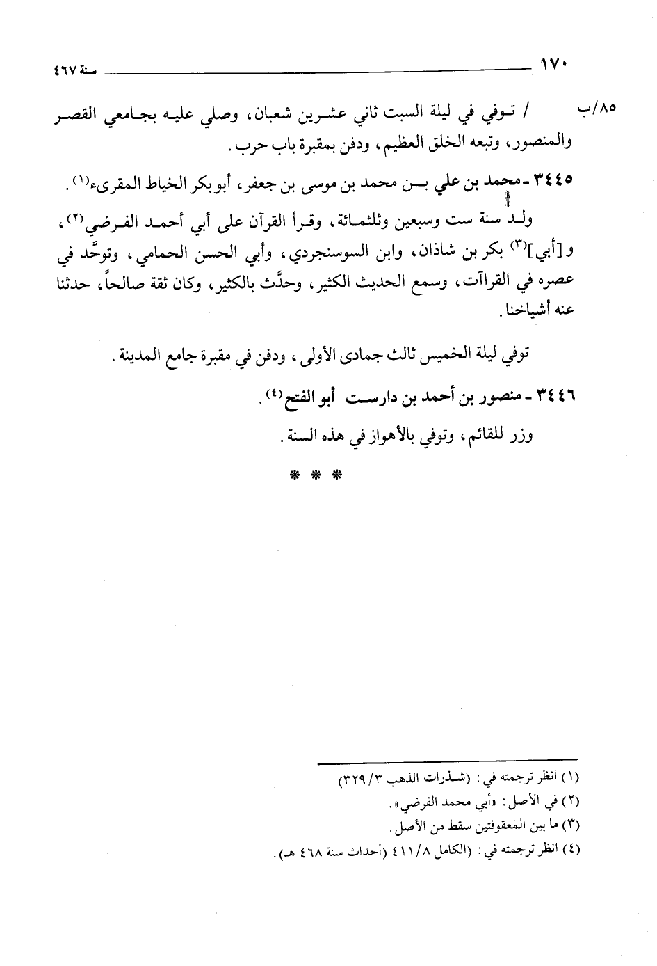 [4] انظر ترجمته في: (الكامل 8/ 411 (أحداث سنة 468 هـ) .