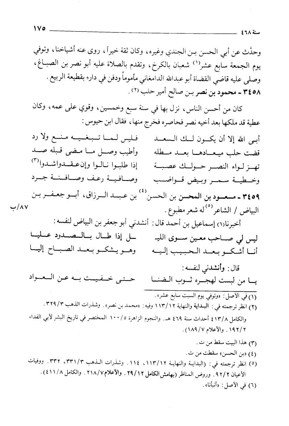 3459- مسعود بن المحسن بن الحسن [4] بن عبد الرزاق، أبو جعفر بن البياض/ الشاعر
