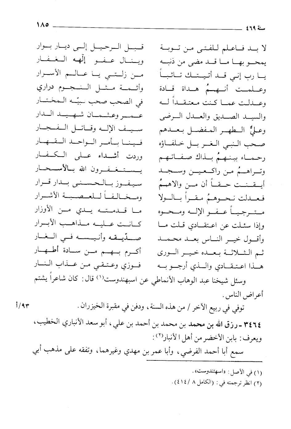 3464- رزق الله بن محمد بن محمد بن أحمد بن علي، أبو سعد الأنباري الخطيب، ويعرف: بابن الأخضر من أهل الأنبار