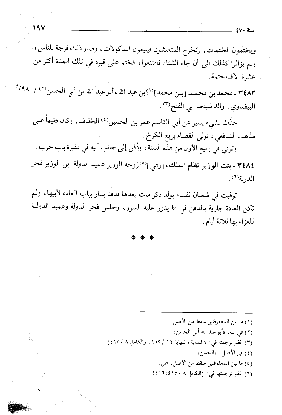 3484- بنت الوزير نظام الملك، [وهي] [5] زوجة الوزير عميد الدولة ابن الوزير فخر الدولة