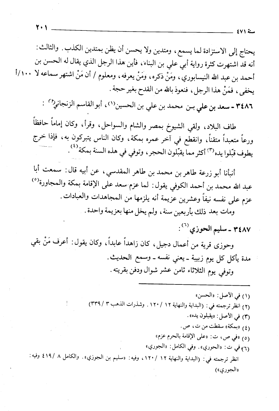 [6] في ت: «الحوري» . وفي الكامل: «الجوري» انظر ترجمته في: (البداية والنهاية 12/ 120، وفيه: «سليم بن الجوزي» . والكامل 8/ 419 وفيه: