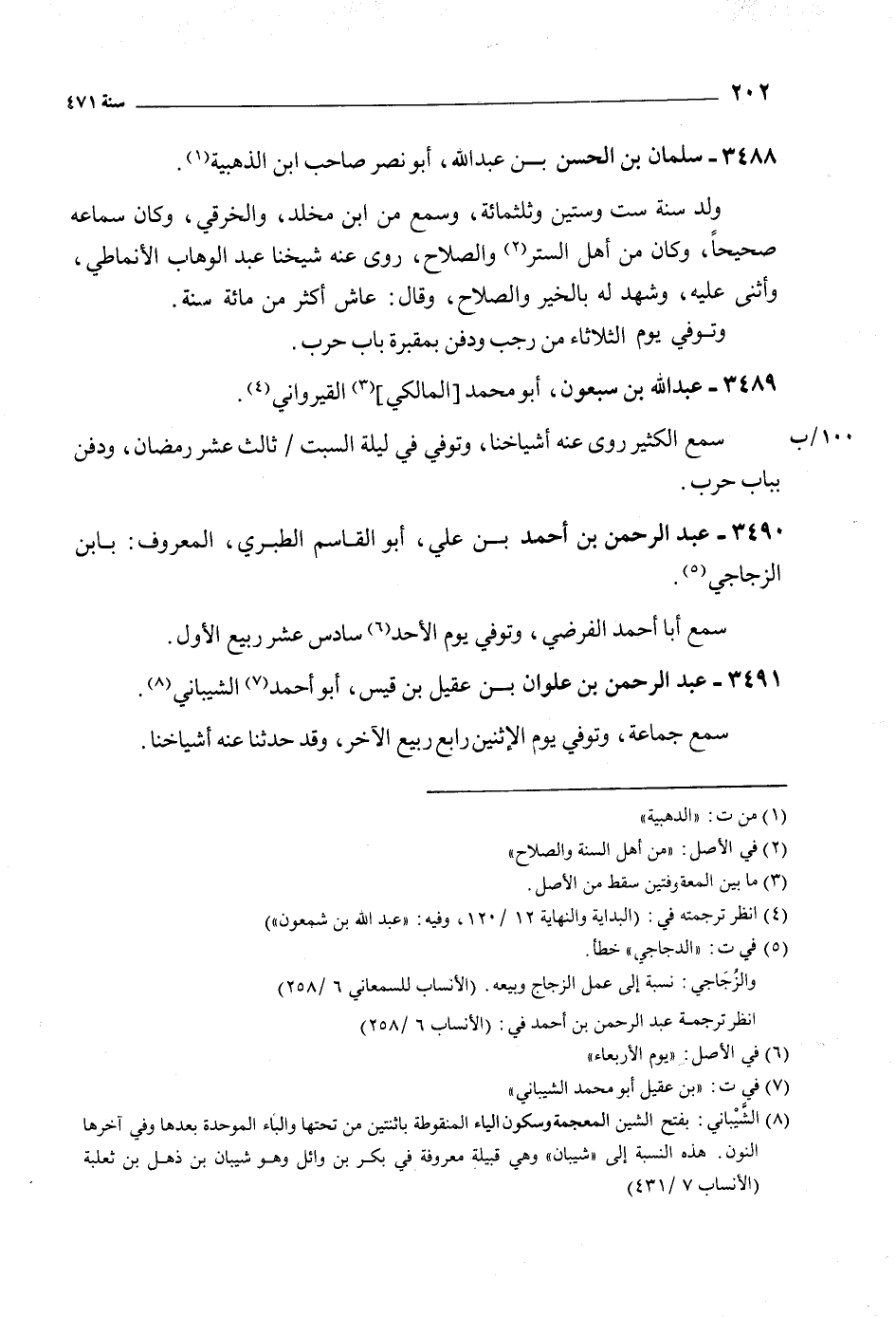 [8] الشّيبانيّ: بفتح الشين المعجمة وسكون الياء المنقوطة باثنتين من تحتها والباء الموحدة بعدها وفي آخرها النون. هذه النسبة إلى «شيبان» وهي قبيلة معروفة في بكر بن وائل وهو شيبان بن ذهل بن ثعلبة (الأنساب 7/ 431)