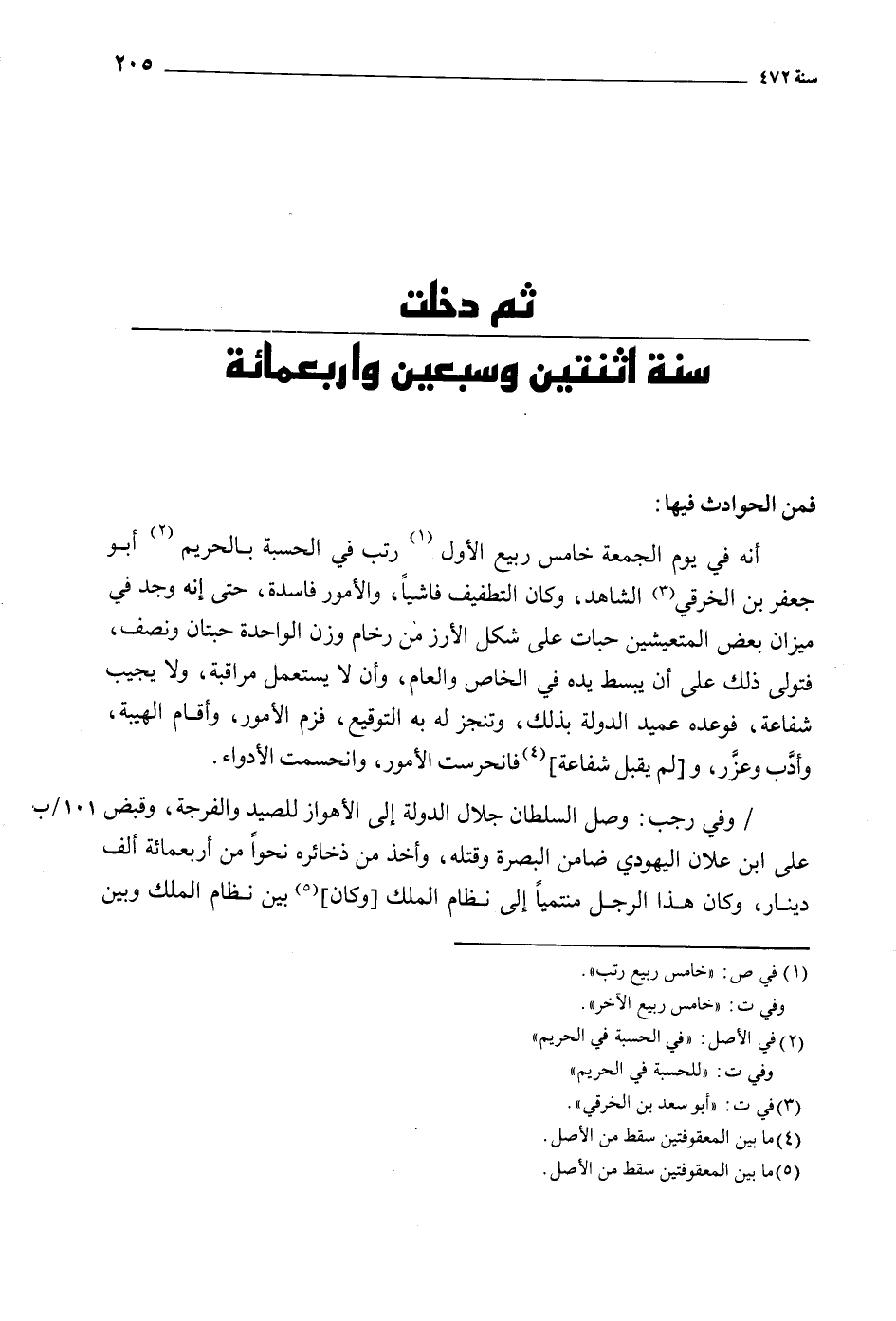 ثم دخلت سنة اثنتين وسبعين واربعمائة