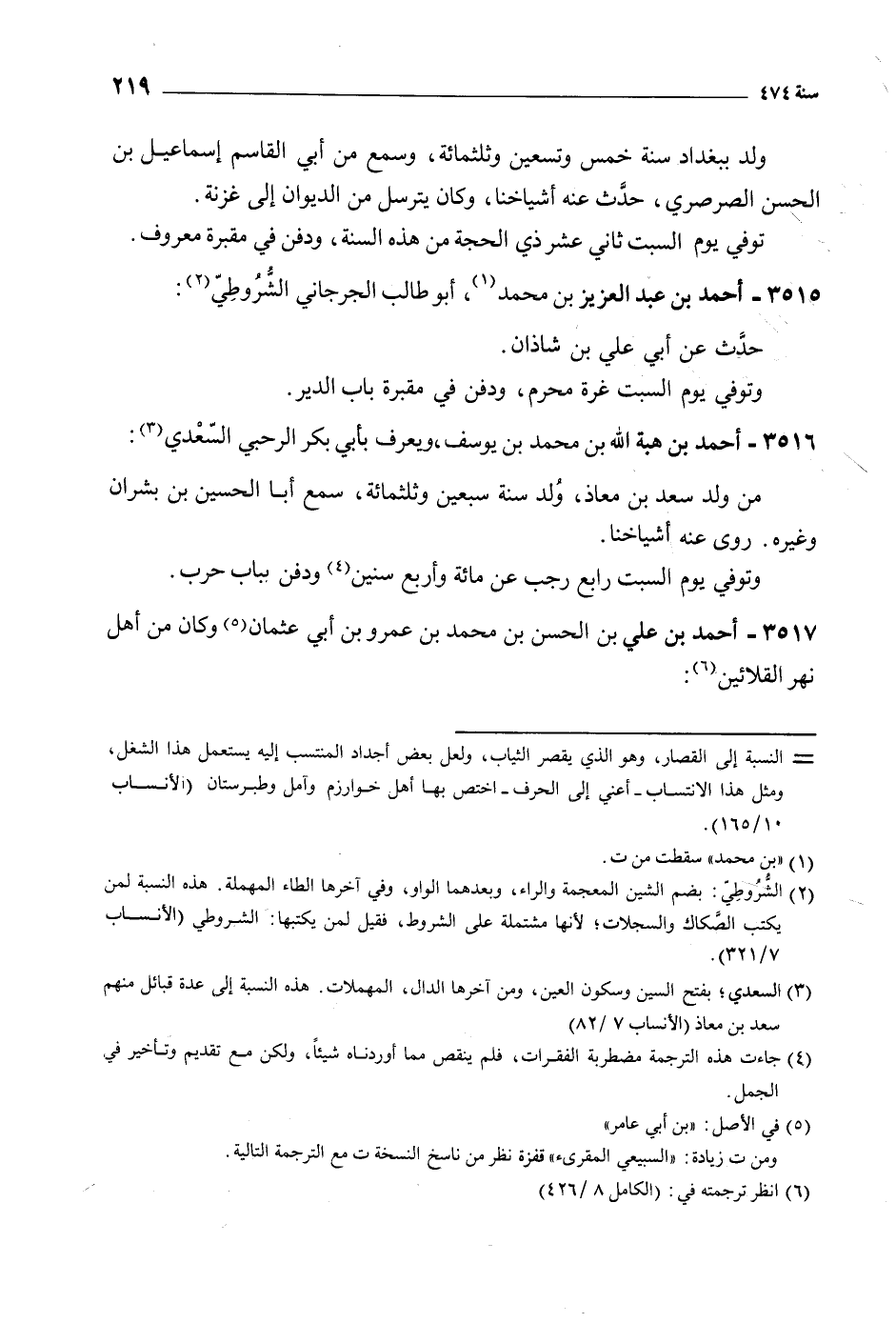 3517- أحمد بن علي بن الحسن بن محمد بن عمرو بن أبي عثمان [5] وكان من أهل نهر القلائين