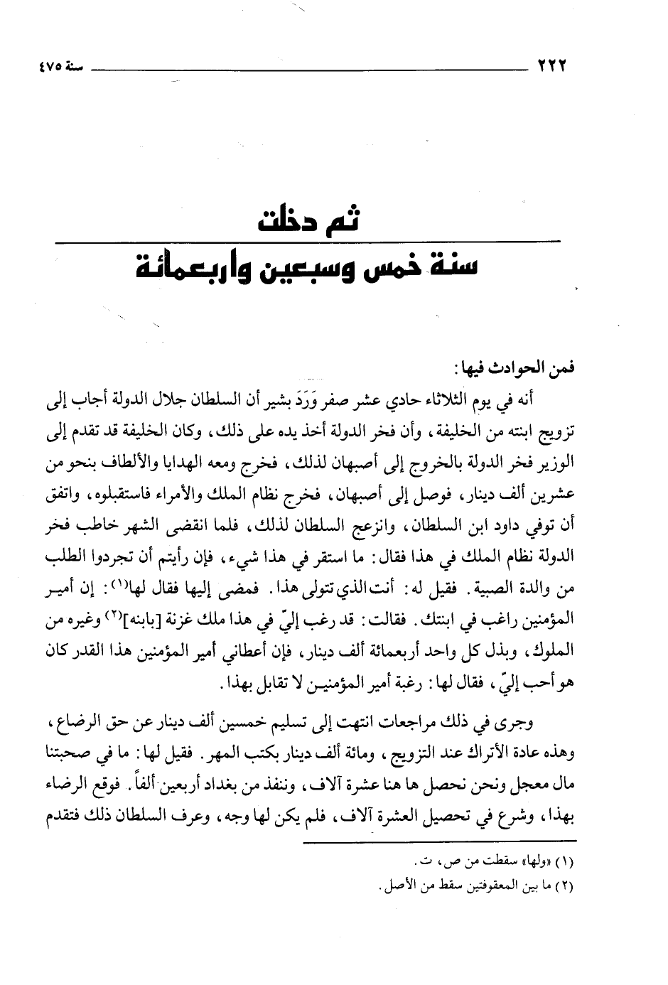 ثم دخلت سنة خمس وسبعين واربعمائة