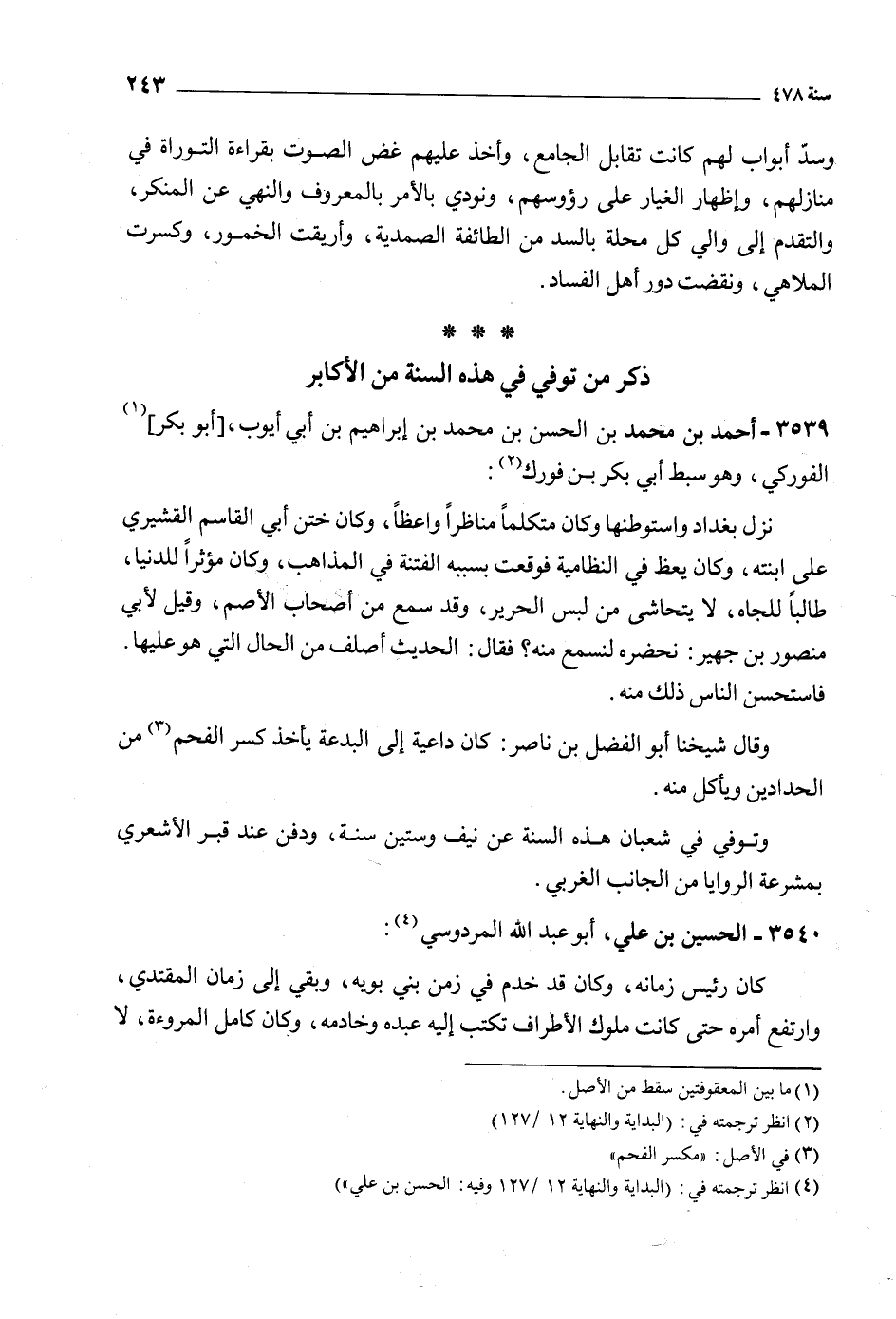 3539- أحمد بن محمد بن الحسن بن محمد بن إبراهيم بن أبي أيوب، [أبو بكر] [1] الفوركي، وهو سبط أبي بكر بن فورك