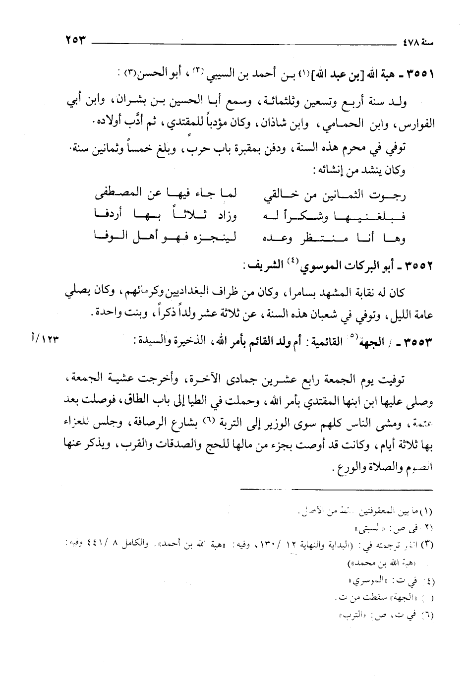 [3] انظر ترجمته في: (البداية والنهاية 13/ 130، وفيه: «هبة الله بن أحمد» . والكامل 8/ 441 وفيه:
