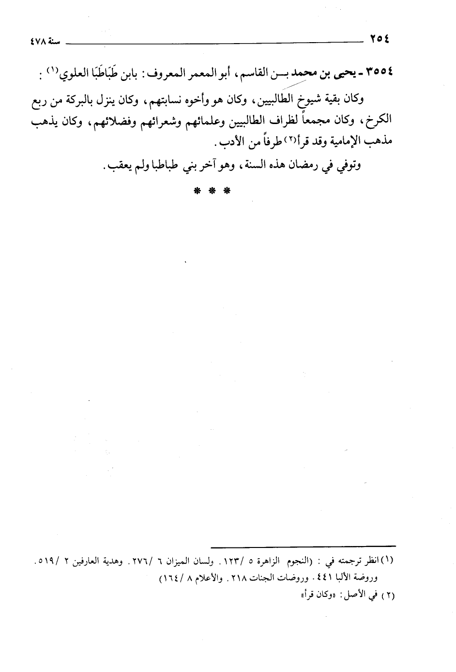 3554- يحيى بن محمد بن القاسم، أبو المعمر المعروف: بابن طباطبا العلوي