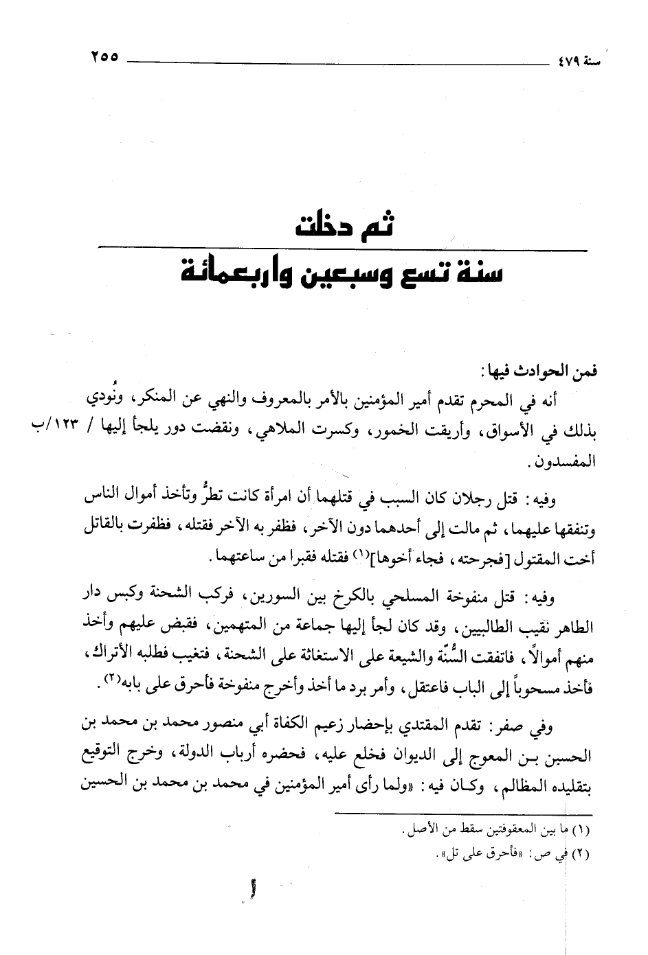 ثم دخلت سنة تسع وسبعين واربعمائة