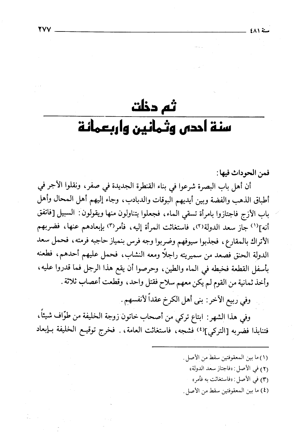 ثم دخلت سنة احدى وثمانين واربعمائة