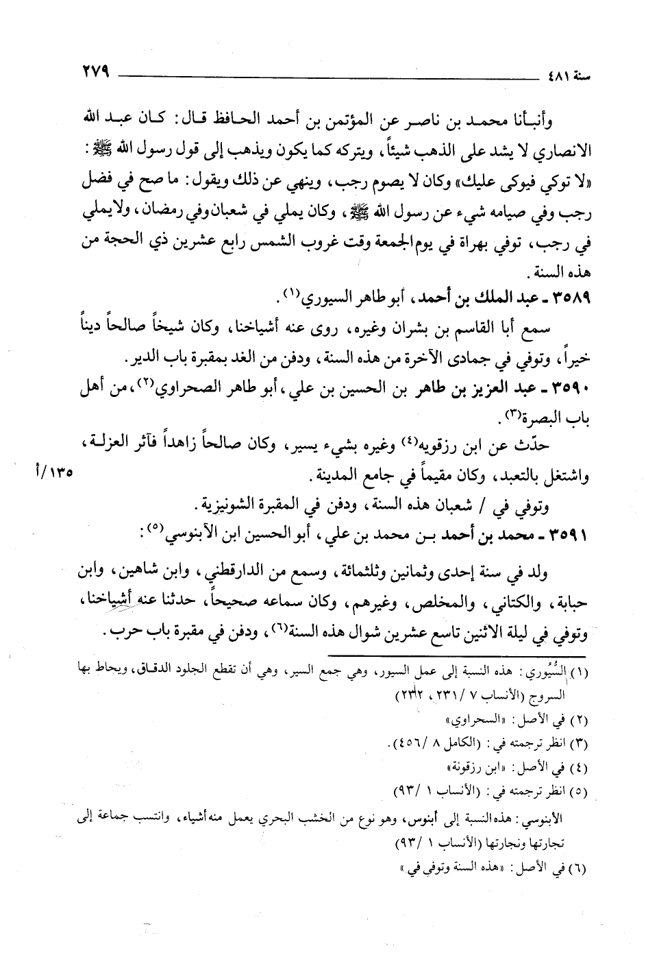 [5] انظر ترجمته في: (الأنساب 1/ 93) الأبنوسي: هذه النسبة إلى أبنوس، وهو نوع من الخشب البحري يعمل منه أشياء، وانتسب جماعة إلى تجارتها ونجارتها (الأنساب 1/ 93)