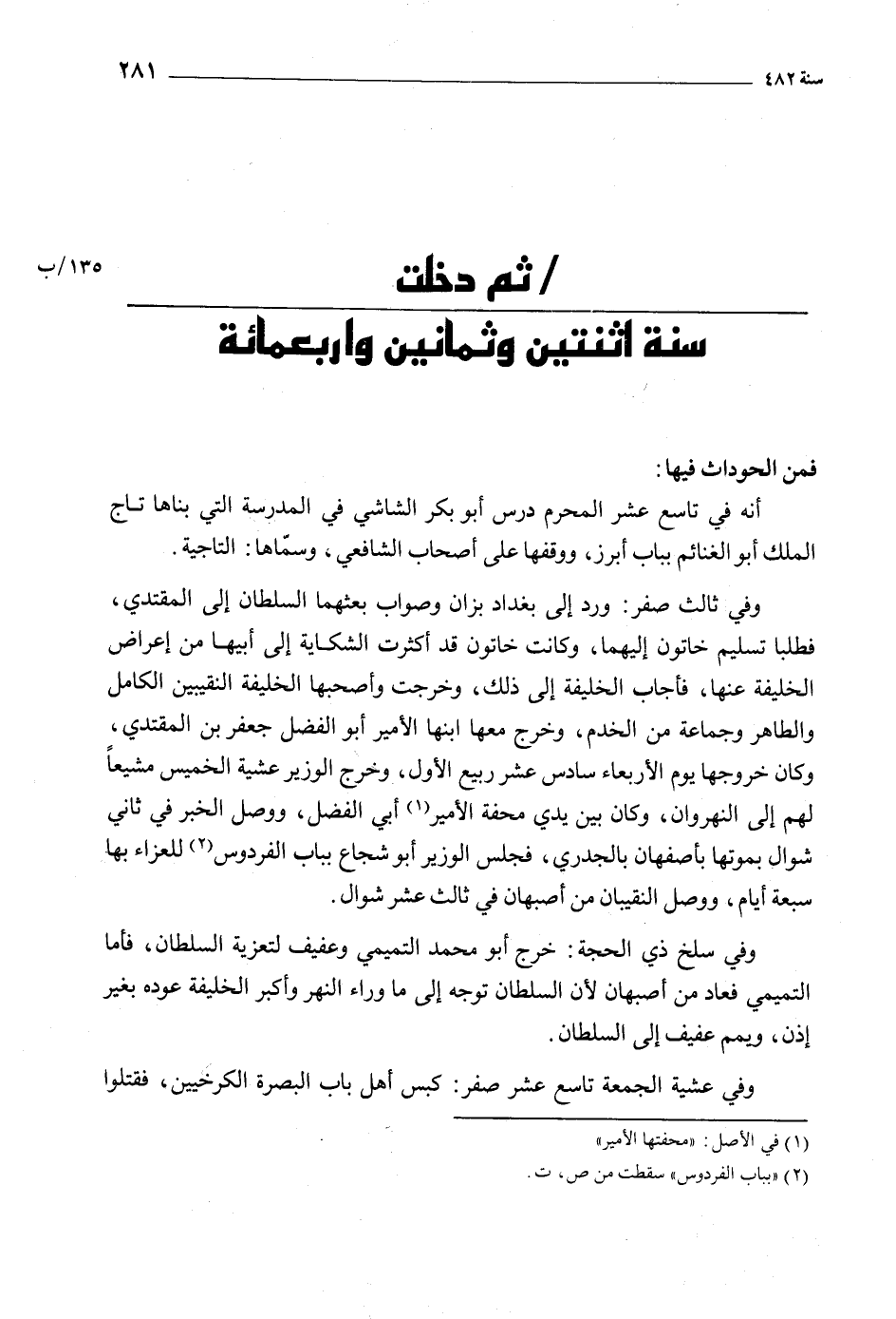 ثم دخلت سنة اثنتين وثمانين واربعمائة