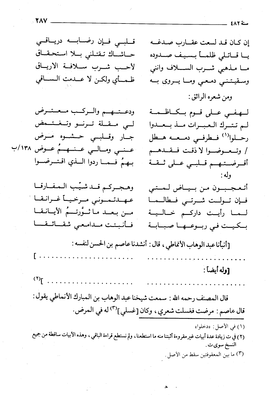 وتعوضوا لا ذقت فقدهم ... عني وما لي عنهم عوض 138/ ب
