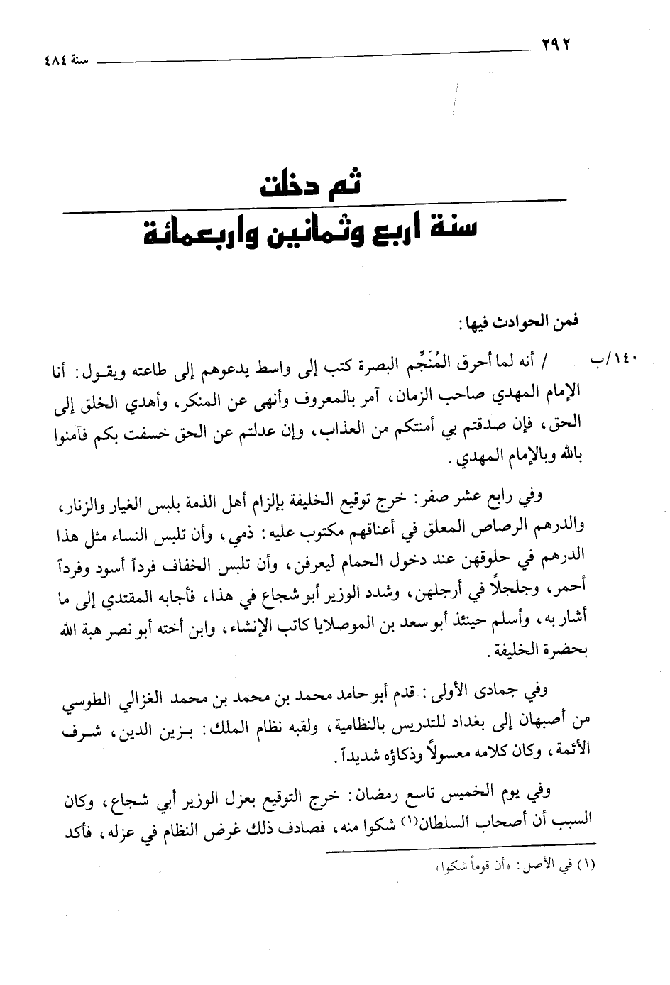 ثم دخلت سنة اربع وثمانين واربعمائة