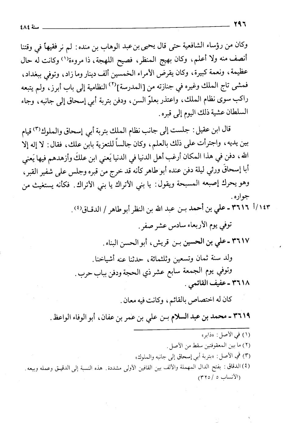[4] الدقاق: بفتح الدال المهملة والألف بين القافين الأولى مشددة. هذه النسبة إلى الدقيق وعمله وبيعه.
