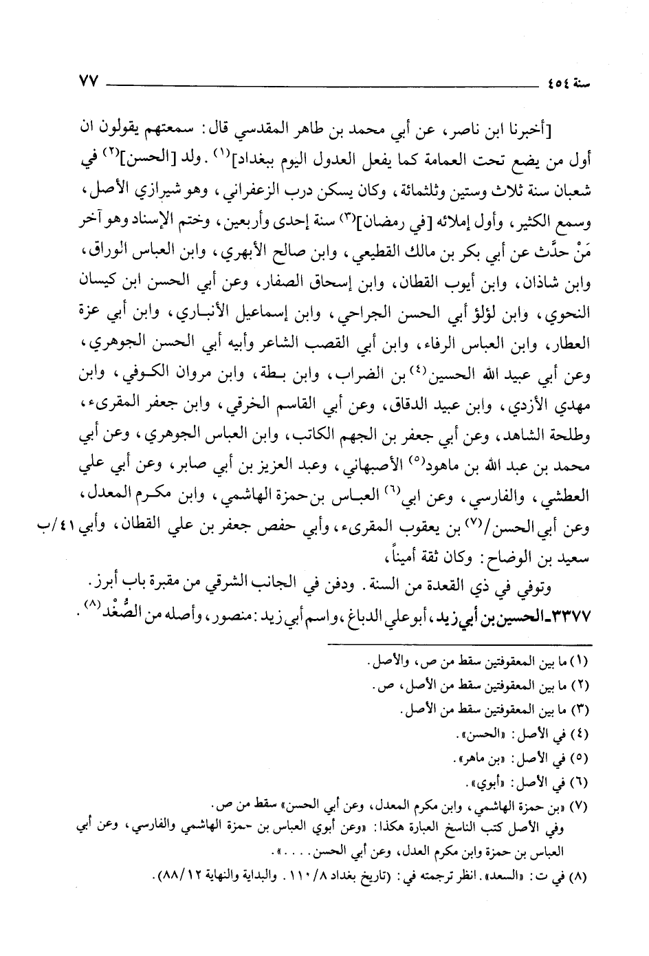 [8] في ت: «السعد» . انظر ترجمته في: (تاريخ بغداد 8/ 110. والبداية والنهاية 12/ 88) .