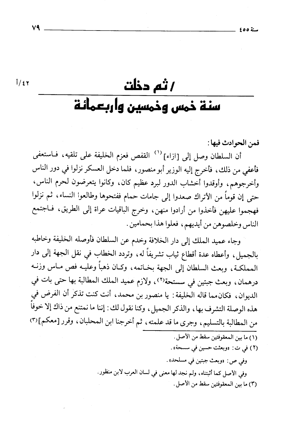 ثم دخلت سنة خمس وخمسين واربعمائة