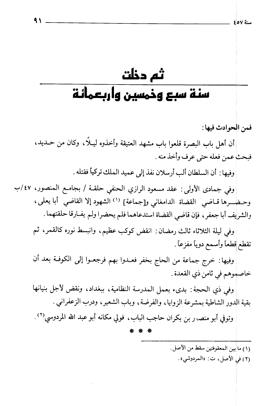 ثم دخلت سنة سبع وخمسين واربعمائة