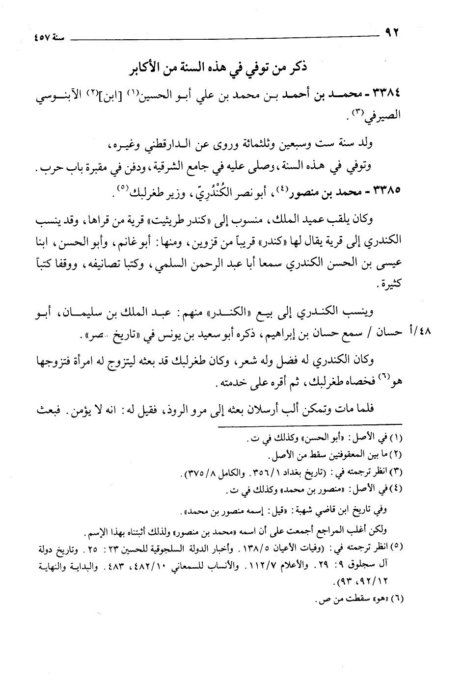 3385- محمد بن منصور [4] ، أبو نصر الكندري، وزير طغرلبك