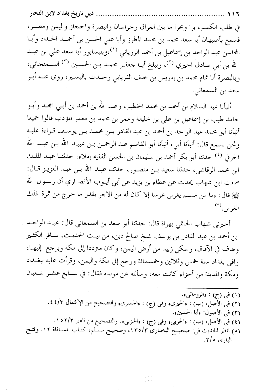 أنبأنا ذاكر بن كامل قال: كتب إلي عبد الغفار بن محمد الشيروي قال: أنبأنا أبو نصر عبد الكريم بن محمد بن أحمد [2] الشيرازي بالدامغان، حدثني أبو سهل عبد الواحد بن أحمد النسفي ببغداد إملاء، حدثنا أبو عبد الله بن أبي الفرج الفارسي بنسف، حدثنا أبو عبد الرحيم منصور بن محمد الفقيه الشيرازي، حدثنا أبو عصمة عامر بن هشام بن عبدان الأرزكاني الشيرازي، حدثني محمد بن الحسن البكاري الشيرازي، حدثني عبد الله بن عبد الرحمن الأنصاري قال: قال فضيل بن عياض: يا عبد الله! من كف عن كشره فافعل به ما يسره.