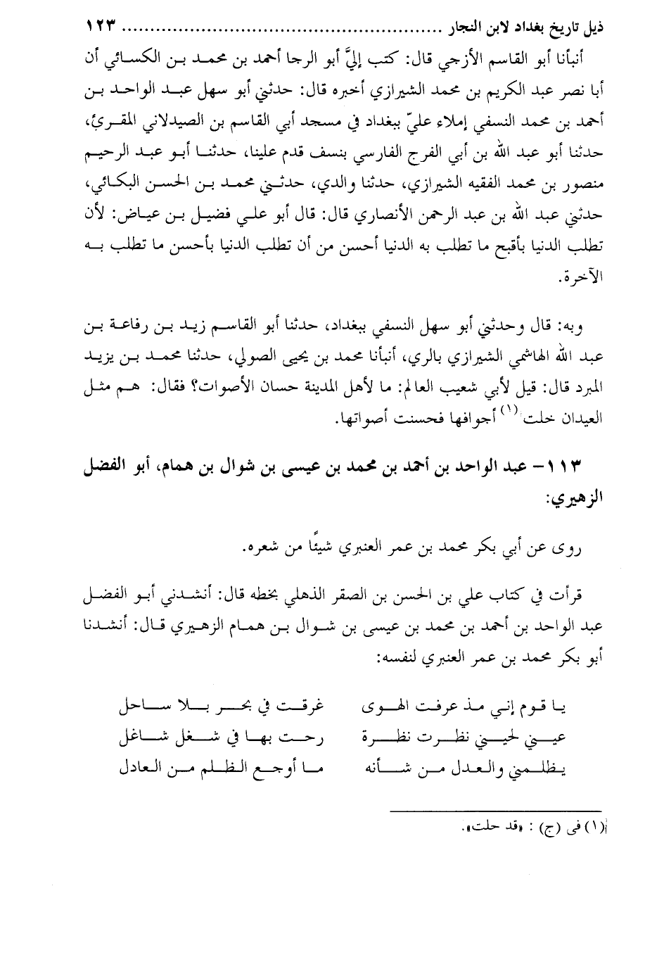 122- عبد الواحد بن الحسن بْن مُحَمَّد بْن إسحاق بْن إِبْرَاهِيم بْن مخلد بن جعفر الباقرحي، أبو الفتح، الفقيه الشافعي: