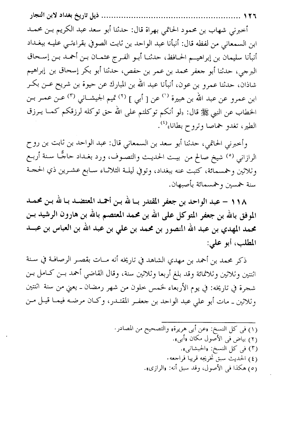 124- عبد الواحد بن الحسين بن إبراهيم بن المعيل، أبو القاسم الصوفي المعروف بالجنيد: