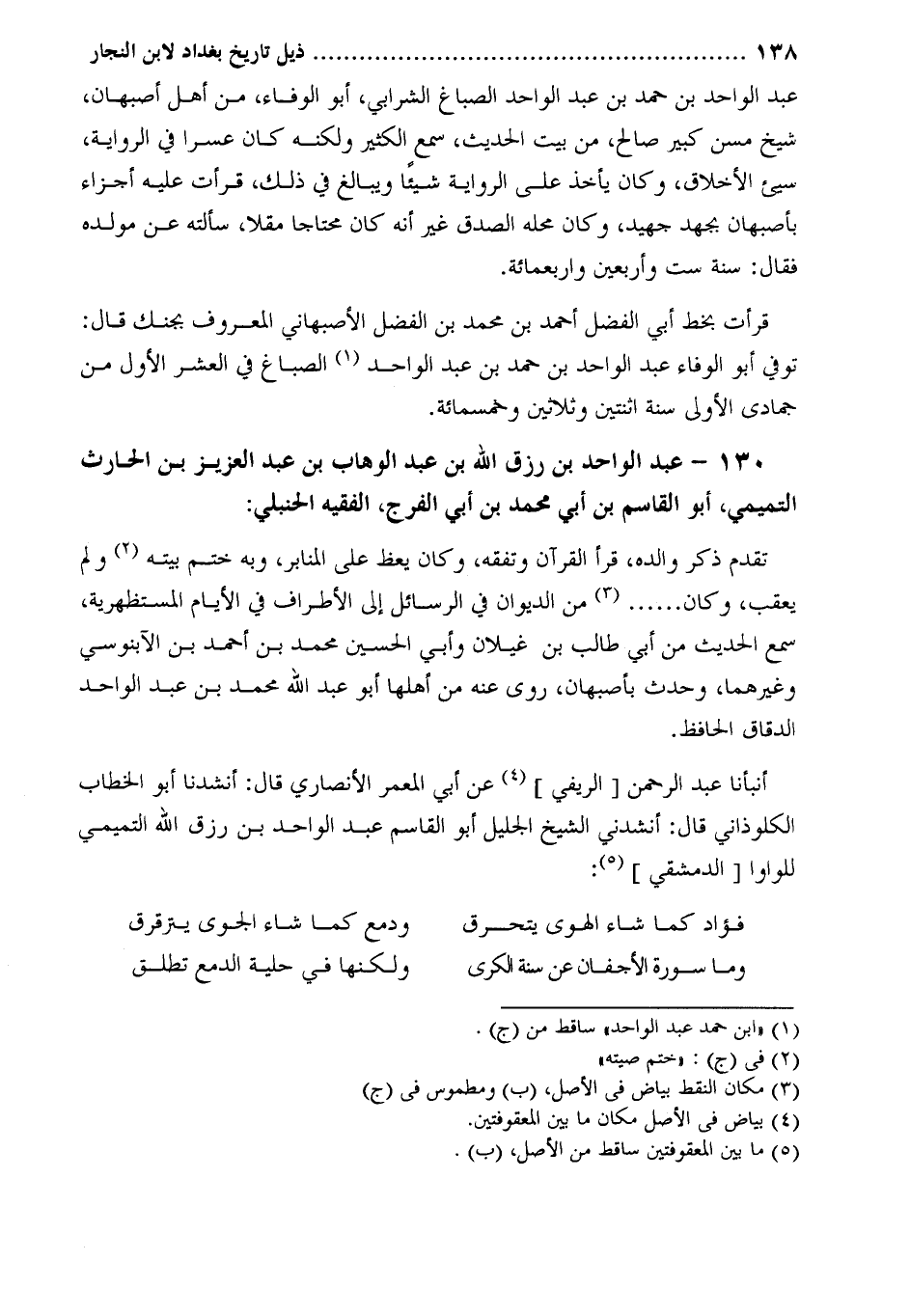 [2] في (ج) : «آخر الجزء السابع والأربعين بعد المائة من الأصل ويليه اسم: «عبد الواحد بن عبد السميع.