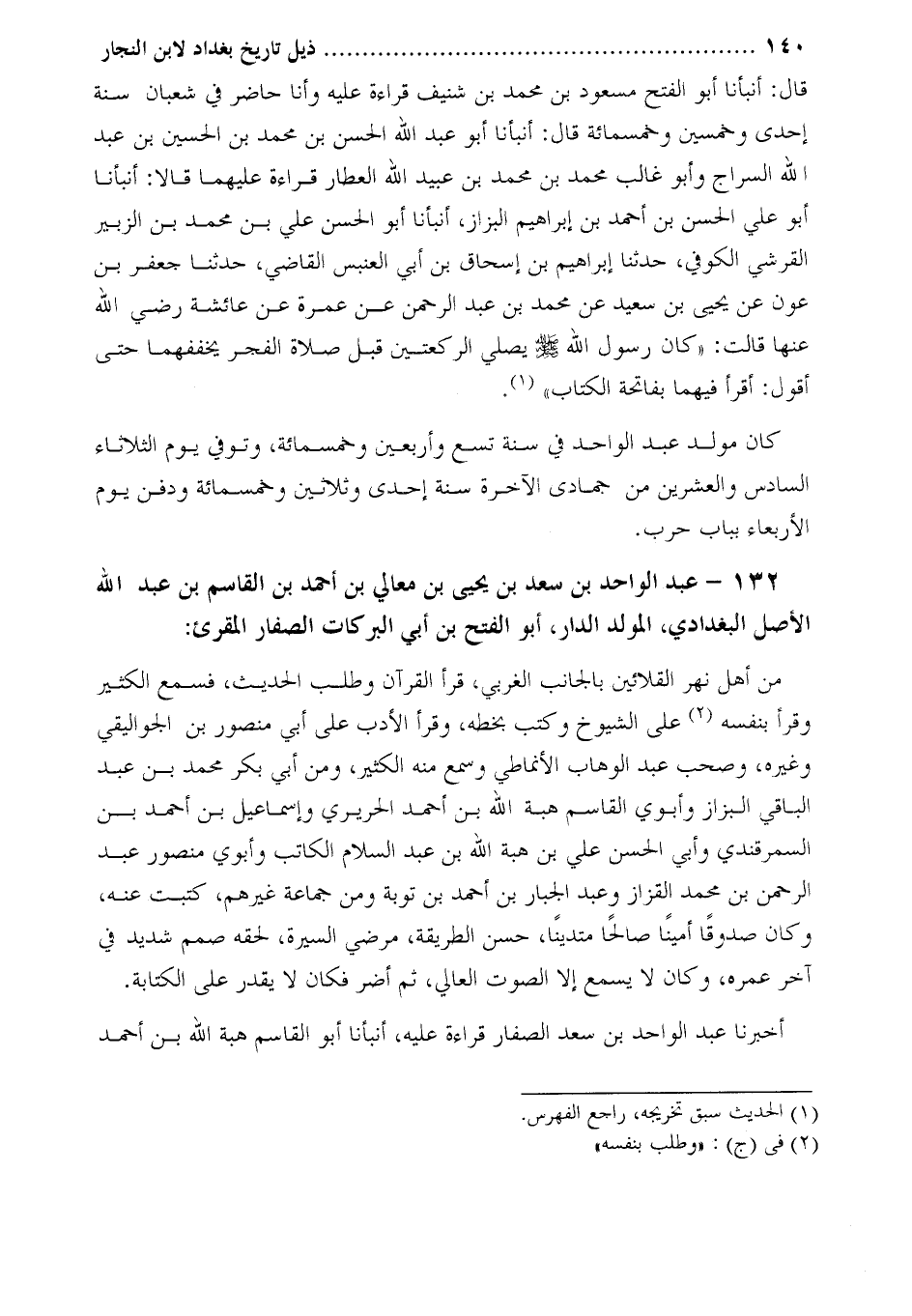 أنبأنا ذاكر بن كامل عن هزارسب بن عوض قال: أنبأنا أبو غالب محمد بن الحسن الباقلاني قراءة عليه عن القاضي أبي الْعَلاءِ مُحَمَّد بْن عَلِيّ بْن يَعْقُوبَ الْوَاسِطِيُّ قال:
