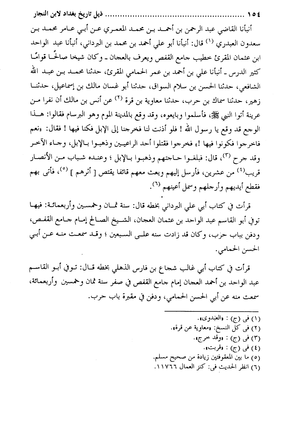 152- عَبْد الواحد بْن عليّ بْن مُحَمَّد بْن ثابت بن شعيب بن صالح، أبو طاهر النجار المكفوف: