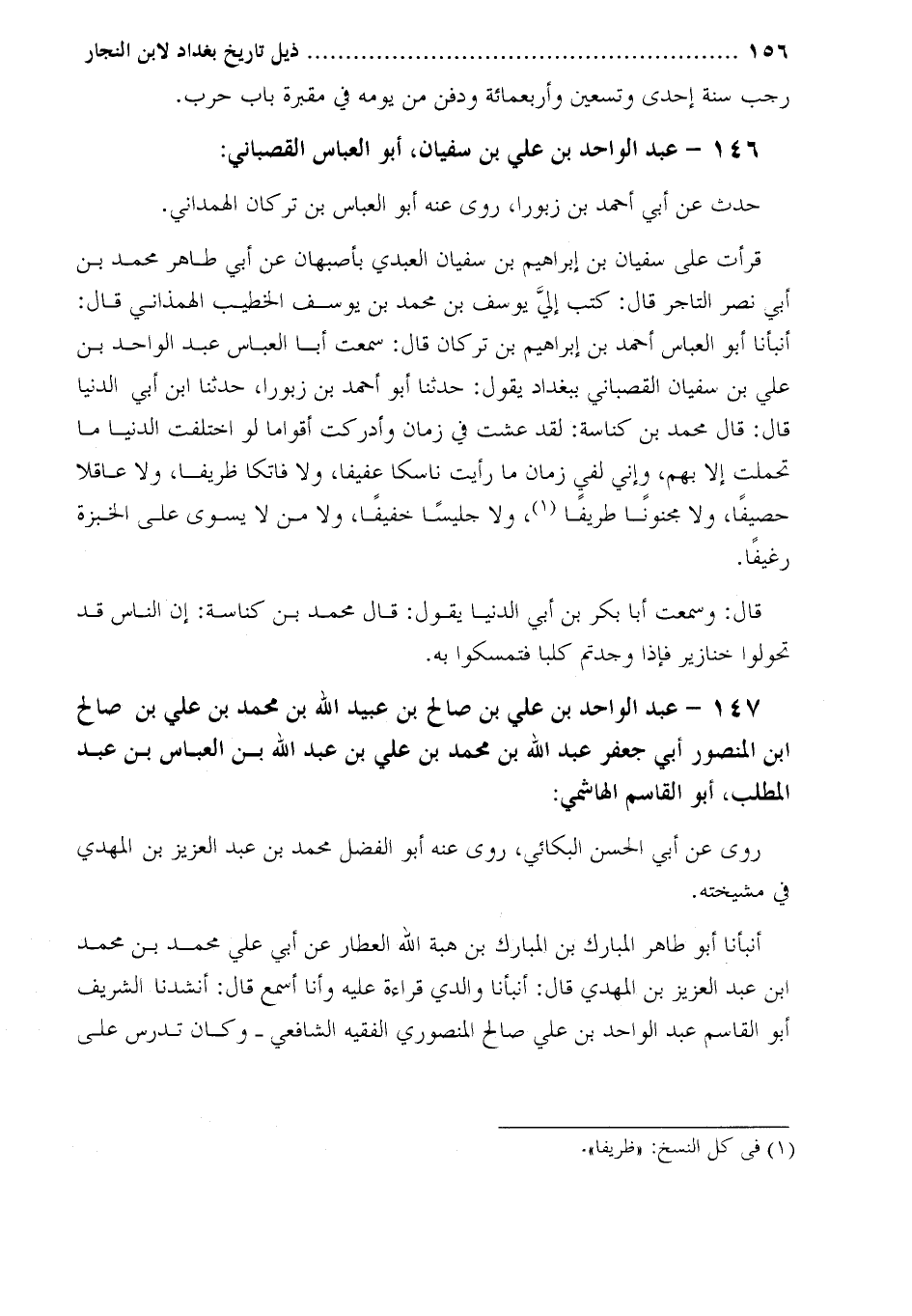 قرأت بخط أَبِي عَبْد اللَّه مُحَمَّد بْن أَبِي نصر الحميدي قال: عبد الواحد بن علي بن