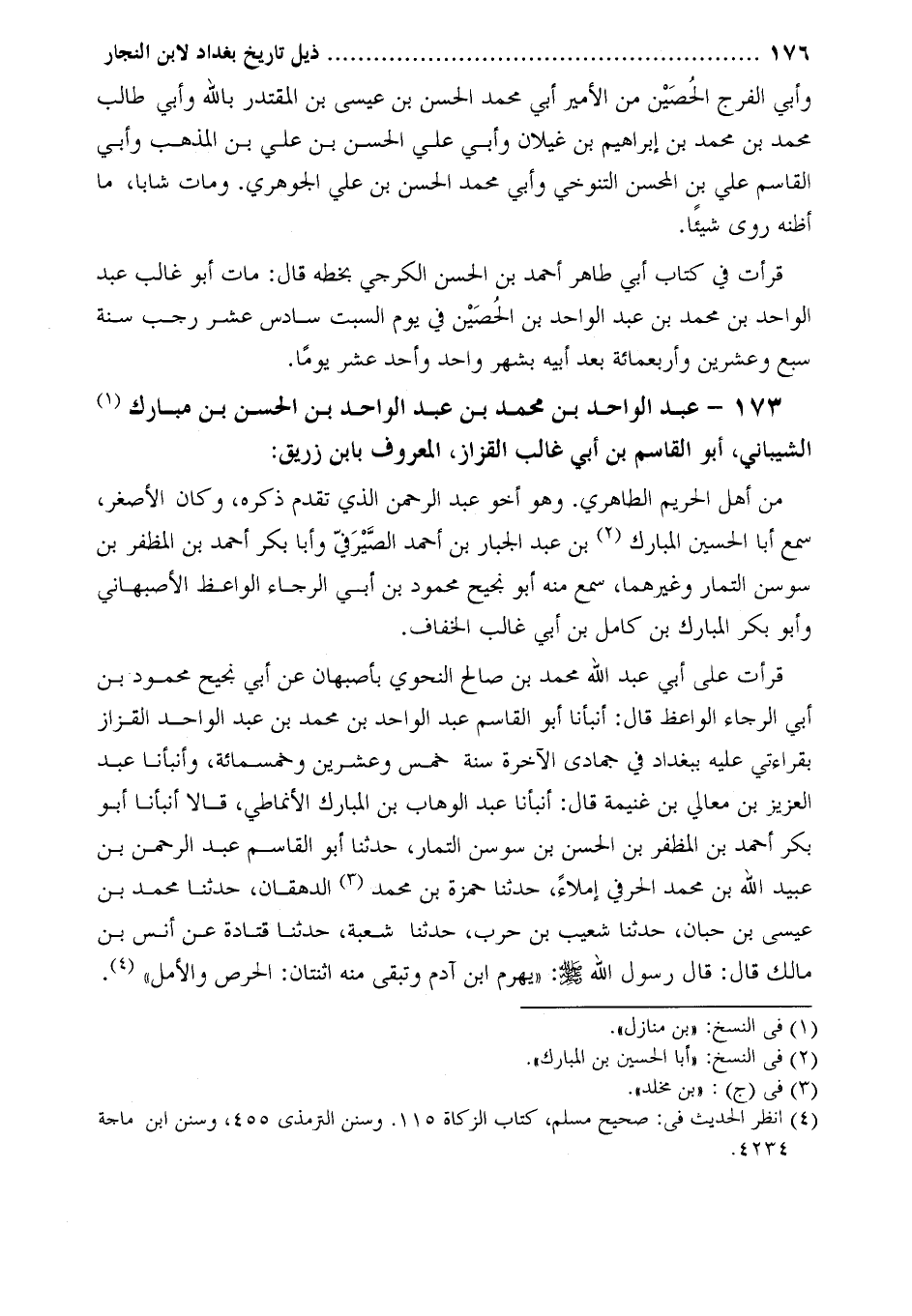 182- عبد الواحد بن المطهر بْنُ عَبْدِ الْوَاحِدِ بْنِ مُحَمَّدِ بْنِ عَبْدِ الله بن الفضل ابن الربيع بن محمد بن بشر بن بشير [2] بن زياد بن عقفان بن سويد بن خالد بن أسامة بن العنبر بن يربوع [3] ، أبو نصر [4] بن أبي الفضل البزاني [5] :